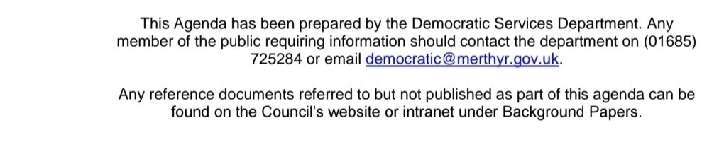 Email from Ann Taylor, Democratic Services Department Hyperlink to Guide to Constitution https://democracy.merthyr.gov.uk/documents/s73614/Guide%20to%20Model%20Welsh%20Local%20Authority%20Constitution.pdf Hyperlink to 'Agenda' and Papers https://democracy.merthyr.gov.uk/ieListDocuments.aspx?MId=6768 Hyperlink to Constitution https://democracy.merthyr.gov.uk/documents/g6768/Public%20reports%20pack%2030th-Sep-2025%20Constitution.pdf?T=10 Hyperlink to 'Agenda' Frontsheet https://democracy.merthyr.gov.uk/documents/g6768/Agenda%20frontsheet%2030th-Sep-2025%20Constitution.pdf?T=0
