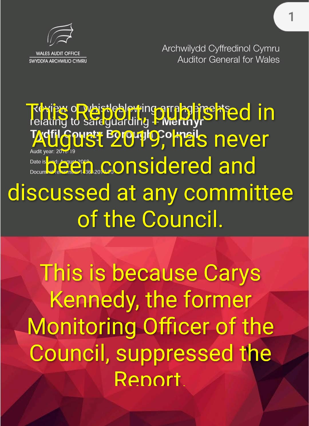 Email sent to Head of Democratic Services My email to the Head of Democratic Services Text version RE: Question for Full Council [NOT PROTECTIVELY MARKED]Geoff Jones <geoff.jones07@gmail.com>To: Taylor, Ann <Ann. Taylor@merthyr.gov.uk>Cc: geraint.morgan@merthyr.gov.ukSat, 15 Nov 2025 at 13:56Hi AnnI must admit to being confused by the reaction to my question at the Full Council meeting.The Monitoring … Continue reading My Unanswered Questions to the Full Council – An update.